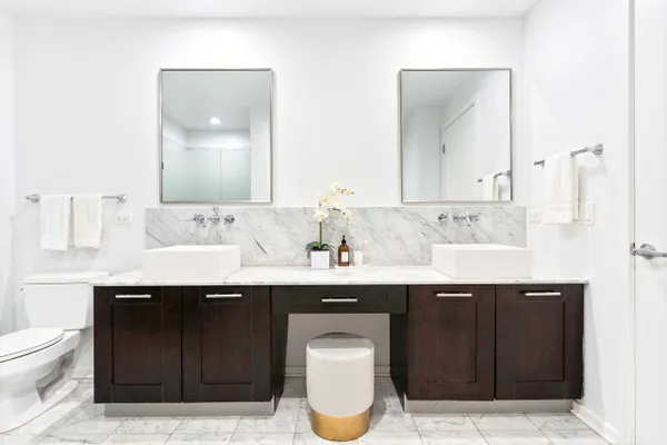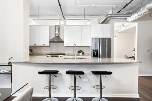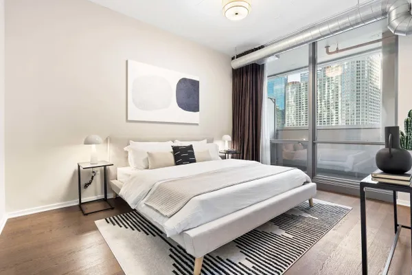 Rarely on the market featuring the best of both worlds: loft living and true bedroom privacy with fully enclosed rooms in one of Streeterville's most sought-after, full-amenity buildings! This 1350sqft sun-filled 2 bedroom + office / 2 bath home features a perfect split floor plan and open layout that is perfect for both everyday living and entertaining, high ceilings, floor-to-ceiling windows, hardwood flooring, and IN-UNIT W/D. The spacious living and dining area leads seamlessly into a beautiful chef's kitchen showcasing rich espresso cabinetry, granite countertops, and stainless-steel KitchenAid appliances. Step outside and relax on your private balcony. An additional built-in office nook makes working from home a breeze. The large primary suite features a spa-inspired marble bath with double vanity, soaking tub, and separate shower, plus professionally organized custom closets including a generous walk-in closet. The second bedroom is fully enclosed and spacious, great for guests or family. Walking distance to everything... the lake, RiverWalk, Michigan Ave, restaurants and nightlife in River North, Gold Coast, Target, bowling, AMC theaters AND Whole Foods is right in the building! Attached deeded heated parking available for an additional $40,000. Storage unit included. Full amenity building with gym, pool, business center, dog run, party room, theater room, dry cleaner, bike room and 24-hour door staff! HOA Fees include everything except for electric!