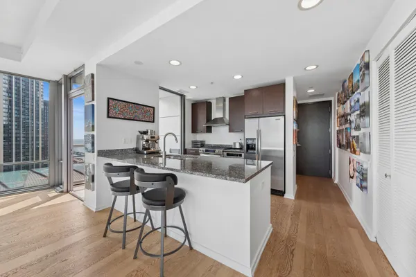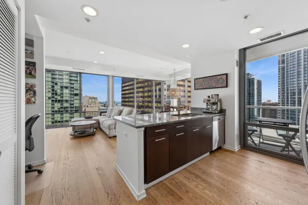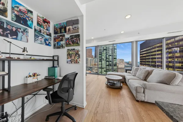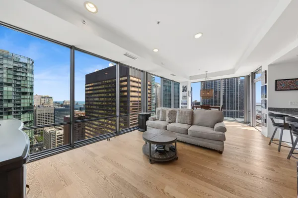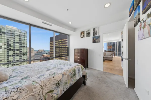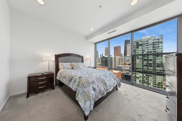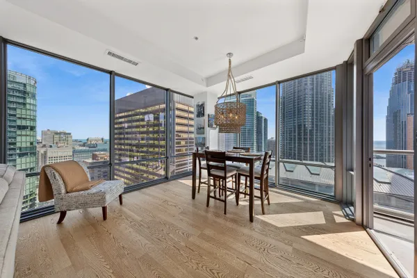 Light filled 1BR/1.5BA luxury NE corner residence with breathtaking north city and east water views of the Chicago skyline, Lake Michigan, Navy Pier and their seasonal fireworks. This sophisticated home features floor-to-ceiling windows, a private balcony off the liv/din room, a versatile office niche, and a convenient powder room. Elegant finishes include stainless steel appliances, granite kitchen, marble baths, hardwood floors, and in-unit washer/dryer The Fairbanks offers full-service luxury living with 24-hour door staff, state-of-the-art fitness center with yoga room, sauna, outdoor pool and sundeck with grilling stations, private dog run, and beautifully appointed entertainment spaces including a movie room and catering kitchen. Direct elevator access to Whole Foods and an unbeatable location just steps from Michigan Avenue, the lakefront, Northwestern Medical Campus, premier dining, shopping, and nightlife. Pet-friendly with no weight limit for dogs. Rent Cap 20% -currently over limit. Parking assessment $98.64/mo, 2024 parking tax bill $700.97.